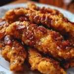 Delightful fusion of savory and sweet chicken tenders wrapped in crispy bacon and caramelized brown sugar, perfect for any occasion.