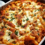 A comforting baked ziti dish with creamy ricotta, melty mozzarella, and hearty marinara, perfect for family dinners and gatherings.