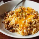 A comforting casserole combining savory ground beef, tender rice, and gooey cheese, perfect for busy weeknights and family gatherings.
