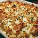 A creamy and cheesy Chicken Alfredo Pasta Bake that’s perfect for family dinners and gatherings.
