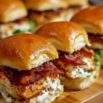 Delightful sliders filled with tender shredded chicken, crispy bacon, and creamy ranch dressing, all nestled between sweet Kings Hawaiian rolls.