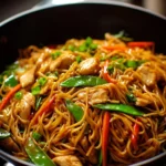 A quick and flavorful Chicken Lo Mein recipe filled with juicy chicken and colorful vegetables, perfect for a cozy meal at home.