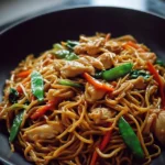 A quick and satisfying Chicken Lo Mein recipe featuring tender chicken, crunchy vegetables, and savory noodles in a delicious soy-based sauce.
