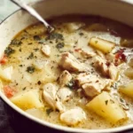A comforting Chicken Potato Soup filled with tender chicken, hearty potatoes, and crispy bacon, simmered in a creamy broth.