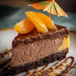 A delightful dessert combining rich chocolate with zesty orange flavors, featuring a crumbly base, creamy mousse, and tangy glaze.