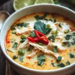 A warm, aromatic soup made with tender chicken, creamy coconut milk, and a hint of spice, perfect for busy weeknights or cozy dinners.
