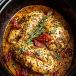A rich, creamy, and cozy dinner that tastes like a special restaurant meal made simple with a slow cooker. The creamy sauce hugs tender chicken with sweet sun-dried tomatoes for a delicious flavor.