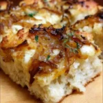This focaccia bread topped with caramelized onions and white cheddar is a delightful take on a classic that elevates any meal.