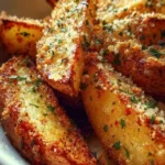 Crispy, flavorful potato wedges infused with garlic and topped with Parmesan cheese, perfect for any occasion.