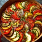 Keywords: ratatouille, French cuisine, summer vegetables, vegetarian dish, baking
