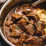 A comforting and filling dish featuring tender beef cooked in a rich gravy, perfect for weeknight dinners or special gatherings.
