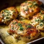 3. Dip each chicken breast one by one into the garlic butter mixture, allowing the excess to drip off.