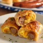 Quick and easy roll-ups made with flaky crescent roll dough, crumbled sausage, and fluffy scrambled eggs, perfect for busy mornings.