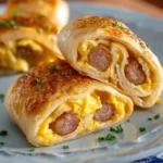 Delicious and quick breakfast roll-ups filled with sausage and scrambled eggs, wrapped in flaky crescent dough.