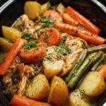 Making this recipe is as straightforward as it gets. You’ll start with layering the chicken, potatoes, and carrots in the slow cooker, then drench everything in a rich garlic butter sauce. It’s all about simplicity and convenience. The end result? Tender, flavorful chicken paired with perfectly cooked vegetables that soak up all the buttery goodness.